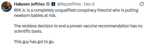 Still, folks like liberal House Minority Leader Hakim Jeffries were going off on X, accusing Robert F. Kennedy, Jr. specifically of sweeping child endangerment.