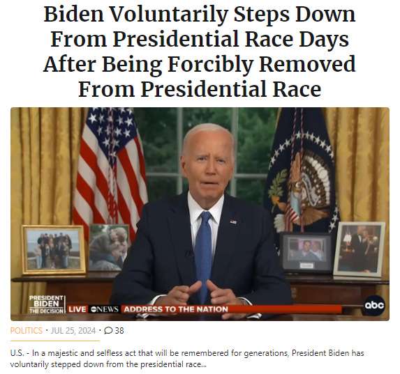 It's the comments from my lefty friends bloviating about how presidential his speech was and how he has served his country for 50 years in a selfless way...this is when I wonder if we are all living in the same world or if we are in parallel universes. Actually saying that when they voted for Biden they voted for Harris too - um, no they didn't...she was selected as VP and then had the nerve to say we should bring back SchoolHouse Rock to learn how it works.