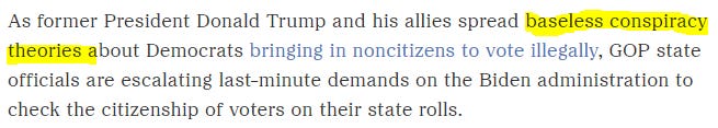 CBS News insists videos like this are “purposely designed to create doubt in an otherwise secure system” hahahahahaha. For starters, the phrase “otherwise secure system” literally means something that is secure in all other ways except the one being discussed, which is essentially an admission that human tampering does indeed happen. Secondly, maybe they missed a little story about Texas removing a million people from voter rolls, a lineup that included dead people, illegal residents, and convicted felons who are ineligible to vote. Or perhaps they’re unaware that California is suing one of its own cities over a charter adopted by local voters that would require voter ID, or that the Biden Harris DOJ is suing the state of Alabama for trying to remove non-citizens from voter rolls. Oh, and NPR calls non-citizen voting a “baseless conspiracy” in case you were wondering, so consider that fact officially checked.