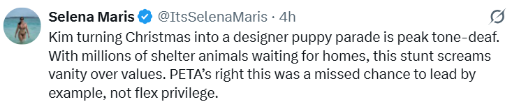 The most absurd part is that this wasn’t even a flex. Kim didn’t post a price tag. She didn’t announce a “Puppy Drop.” She shared a picture of cute, cuddly dogs, which—until about five minutes ago—was one of the few universally agreeable things left on the internet.