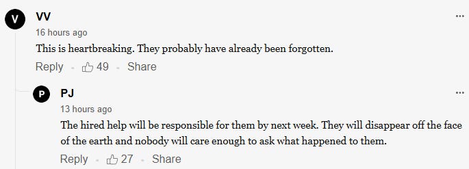 I find it fascinating that people (I’m guessing, ones without money, morals, or both) believe that wealth works like an empathy off-switch—that once you reach a certain tax bracket, you can no longer care about a pet. You simply acquire it, post a few cute photos, and then immediately delegate all affection to “the hired help” so you can move on to the next shiny toy. “We know who’s going to be picking up after those dogs,” the peanut gallery tsk-tsks, as if she who scoops the poop is the only true lover of the mutt.
