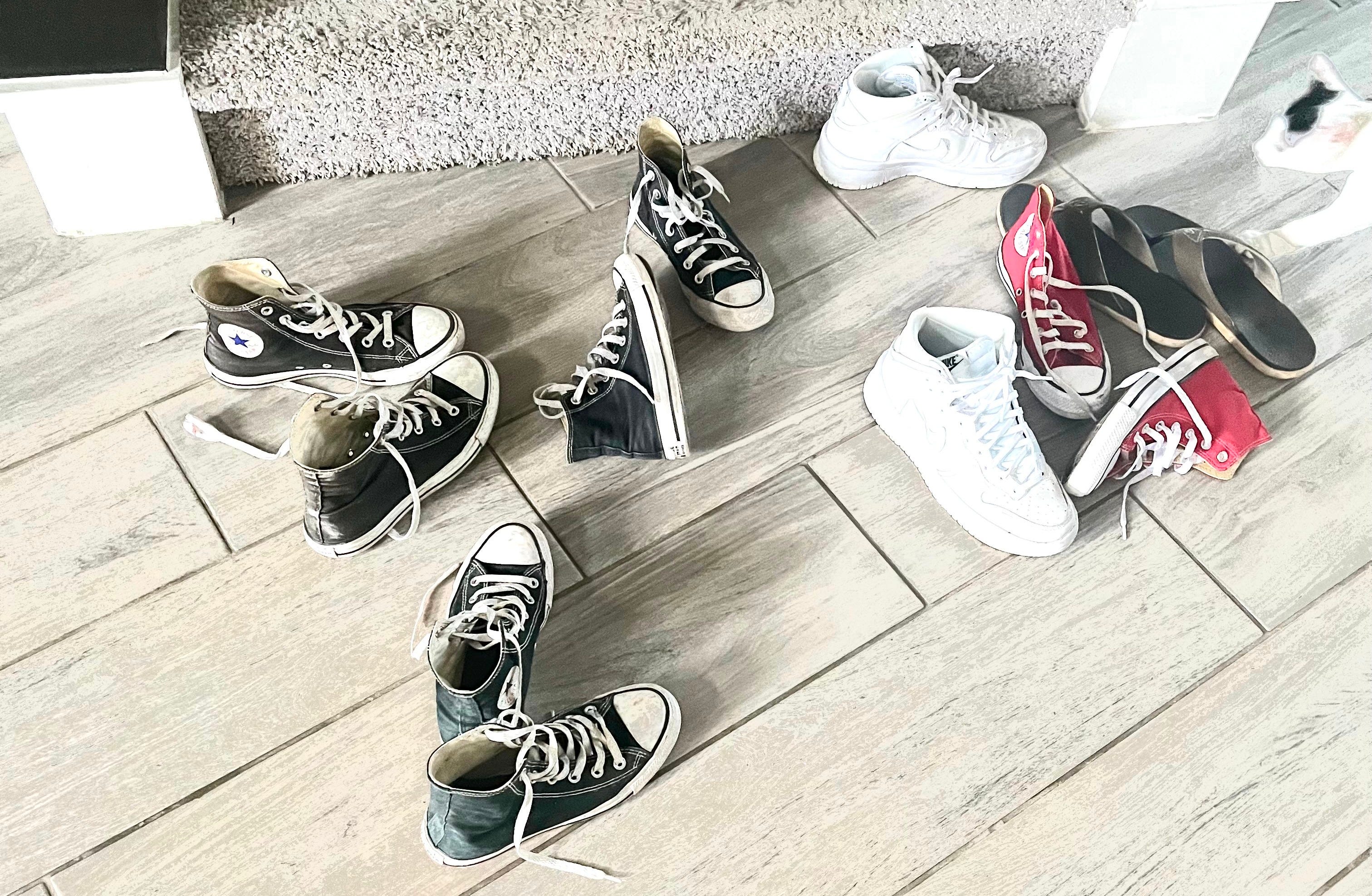 Robinson is obviously the shooter, because he is wearing the exact same Chuck Taylors (*except in a different color) as the guy some people think might be the shooter. I love it when hit men are so dumb that they leave clues all over the crime scene. Also, this is a funny photo I snapped one day when my daughter had a gaggle of girlfriends over. No relation; I just thought it was artsy.