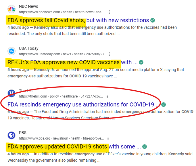 Naturally, mainstream media rushed to spin this as great news for vaxaholics. “FDA APPROVES UPDATED COVID-19 SHOTS,” PBS bellowed, followed by a sheepish whisper in microscopic type: “…with some restrictions for kids and adults.” The same outlets that once hawked the jab as a granny-saving miracle are now straining to slap a smiley-face sticker on what is, in reality, a massive retreat.