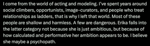 She spoke to ex-boyfriends and former classmates, scoured Erika’s great-grandmother’s illegal gambling history, and diagrams and dissects the Frantzve family tree with surgical precision. (Get a load of this bombshell: a man Erika refers to as her “uncle” online is technically her “father’s sister’s husband’s previous wife’s daughter’s husband. No blood relation whatsoever.” Related: Hand to heart, I have a “cousin” who is actually my father’s sister’s son’s ex-wife’s sister. Sometimes brevity is the soul of sanity.) Love her or loathe her, Candace does her homework.