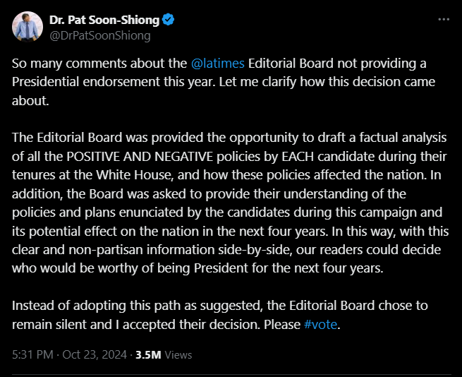 In the midst of the mayhem, LA Times Chairman Dr. Patrick Soon-Shiong tweeted the following: