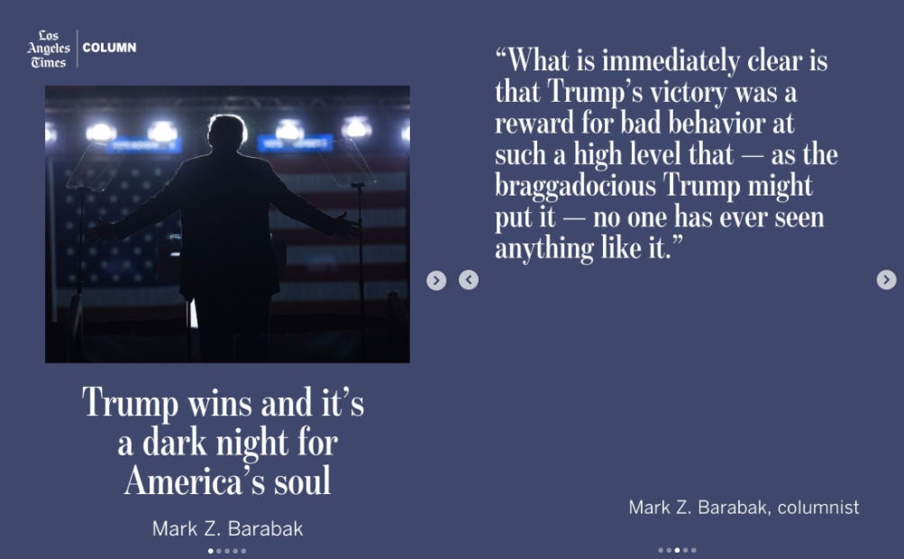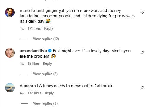 Petulant journalists can cry into their organic oat milk lattes about their bootlicking boss until the donkey comes home [i.e. a democrat is back in the Oval Office], but a quick scan of the comments on that one post alone suggest Dr. Soon-Shiong is merely a shrewd businessman who’s endeavoring to give readers what they want.