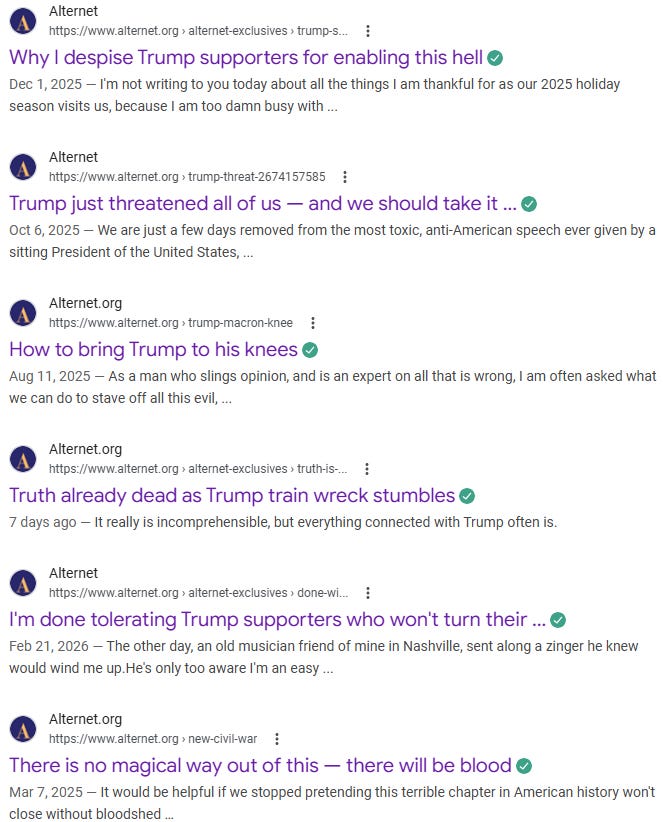 What I am addressing today is the increasingly popular habit—on both sides!—of arguing every political position by declaring half the country morally diseased. (Can you imagine if I wrote a piece declaring “all Democrats are Satan-worshipping pedophiles” or “the Left is solely responsible for every act of political violence in this country”?) That may feel cathartic, but it isn’t exactly journalism.