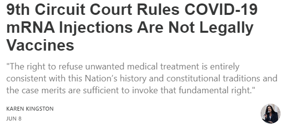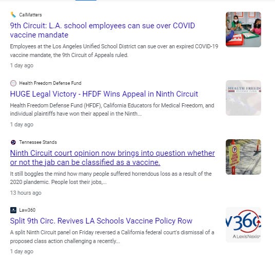 All of which brings us to the sweeping global media silence on the biggest legal news to (not) break since a jury determined that $3 million was a fair amount for McDonalds to pay for serving hot coffee to its customers *the nerve*. (In contrast, finding a dead rat baked into your Chick-fil-a sandwich bun is apparently only worth about $50k. Where’s the justice? I mean, if I’m given the choice, I’ll take scalding thigh burns over biting into a rodent burger all day every day, thankyouvermuch.) The insignificant, uninteresting story they didn’t bother covering: Just this week, the Ninth Circuit Federal Court of Appeals determined that mandating COVID-19 “vaccines” violated the rights of Los Angeles Unified School District teachers and staff.