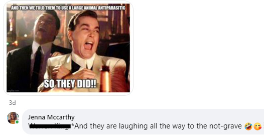 In a recent Facebook post promoting The War on Ivermectin (which I had the honor of co-authoring), a “friend” felt the need to drop this comment: “I see grifters are still trying to scrounge a few dollars from the ivermectin nuttiness [sideways laugh-cry emoji].” He also included this ironic little meme, which naturally I had to respond to: