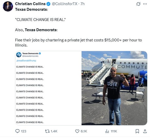 At the end of the day, what Democrats pulled in Texas wasn’t an act of brave civil disobedience—it was legislative LARPing. And while the absentee bandits were busy dodging their duties, mugging for the camera, and pretending they’re fighting for democracy, everyday Texans were stuck waiting for things like disaster relief and property tax breaks.