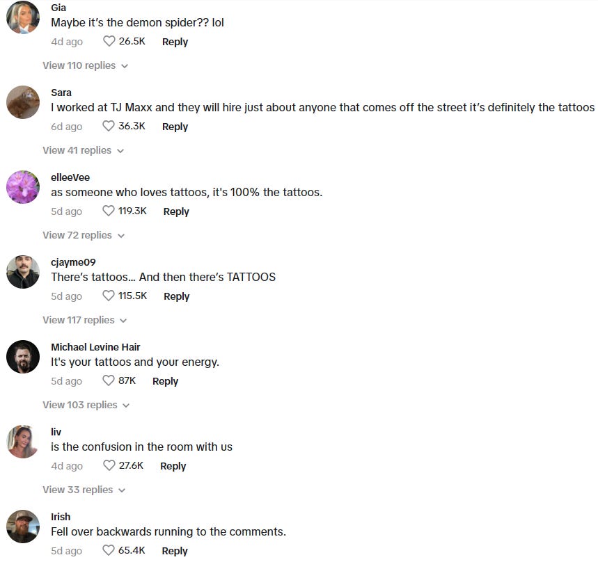 “And, you know, I asked her if it was about my tattoos, obviously, because I know a lot of places don’t like tattoos. She said that wasn’t the reason. I don’t feel like that’s true, but whatever. I’ll leave it at that.”