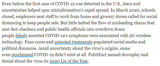 The fine bit of journalistic gobbledygook in question starts with a helpful summary of the history of misinformation surrounding COVID-19: