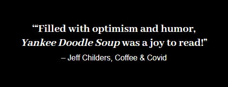 Regardless, I am dizzy with excitement about this book and I think you will be, too. In case you missed the memo, Yankee Doodle Soup is a collection of essays by an enormously talented group of writers with two things in common: 1) They are esteemed, outspoken, proud-card-carrying members of the Conspiracy Theory Club, and 2) they have something positive to say about the pandemic. (Really! Those were the rules and my collaborators did not disappoint.)