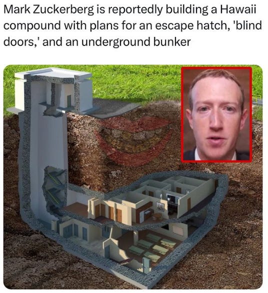 The Internet’s been ablaze lately with stories and speculation about Mark Zuckerberg’s “top-secret underground bunker in Hawaii,” a multimillion-dollar compound so stealth that a Google search for it only returns a scant 2,630,000 results.
