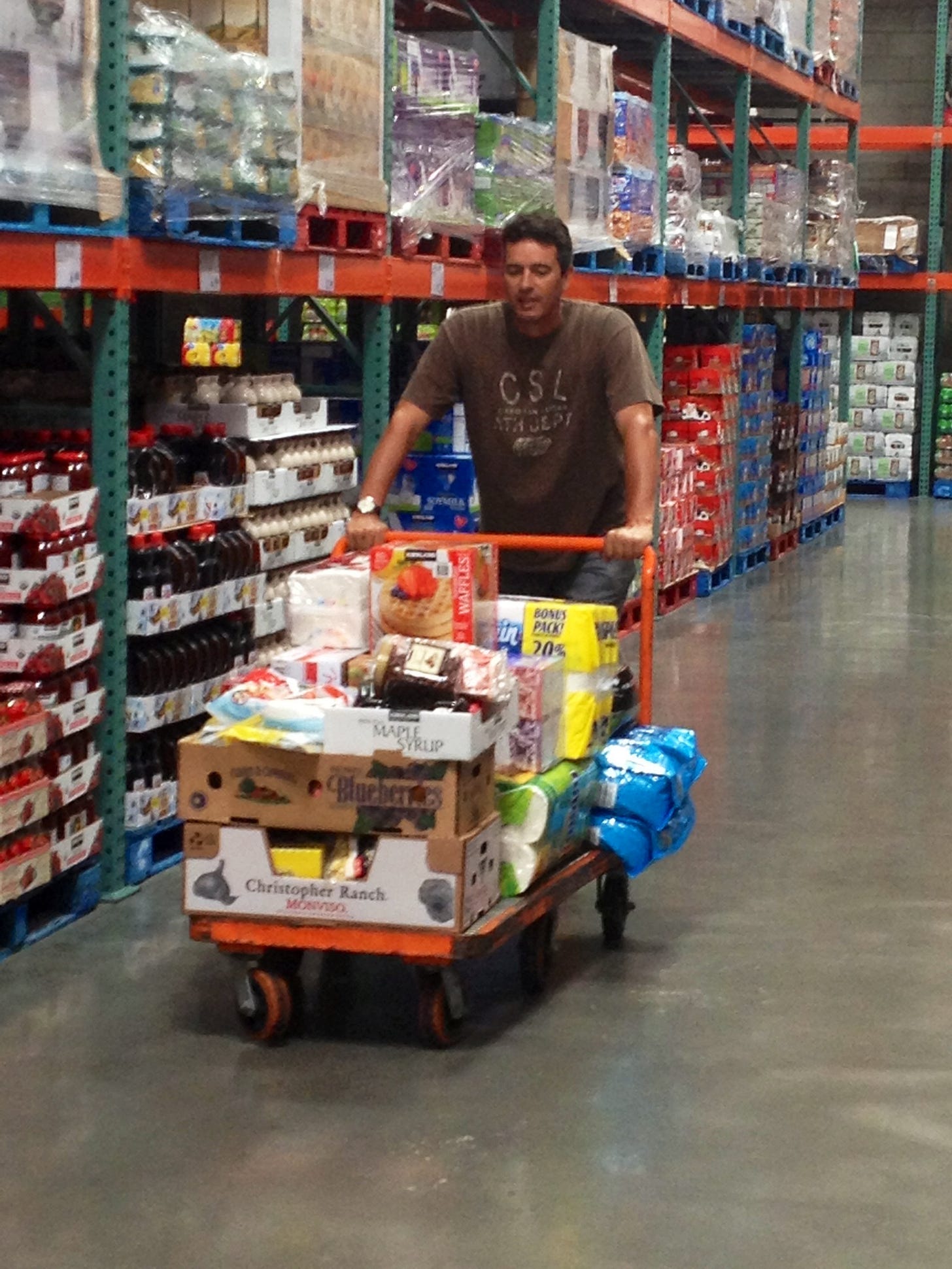 My own Costco cart was actually a flat and it was piled remarkably high as well. Not because we’re prepping (although I’m admittedly a bit of a hoarder); simply because the has-it-all warehouse is thirty trafficky minutes from my house, and we eat a lot of cheese. Don’t judge.