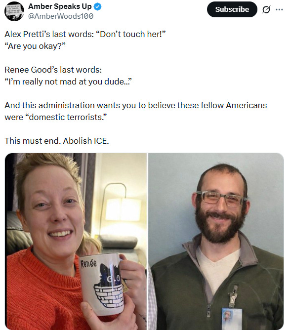 “His last words,” The Guardian opened gravely, “spoken to a woman who had been tackled to the ground and pepper-sprayed by nearby ICE agents, were ‘Are you OK?’ Alex Pretti was an intensive care nurse at a VA hospital; those who knew him recalled, among other things, his devotion to his elderly dog, Joule, who died about a year ago.