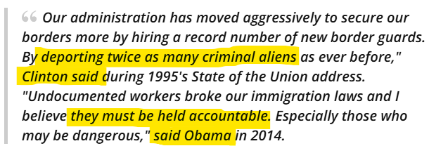 This is the page that’s been scribbled over in the history books: George W. Bush—famous for organized workplace immigration raids—ordered the removal of twice as many illegal immigrants as Trump. Clinton was hardly a slacker in the deportation department. Obama booted more illegals than any president on record. But they did it quietly—a foreign concept to Trump—and also the media forgot to tell the masses they were supposed to be furious about it, so people didn’t rush out to rally and risk their lives for the poor maligned criminals of their communities.