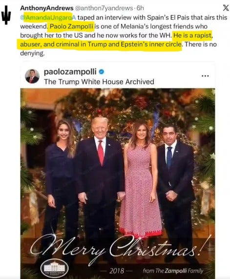 “What is unusual in the case of this former model who worked at the United Nations is that, alongside her former partner and the father of her son, businessman Paolo Zampolli, Ungaro had in the past shared evenings with the Trumps at the family’s Mar-a-Lago mansion, including a party to ring in 2022, which she now recalls as one of those ‘incredibly boring six-hour events,’” El País reported.