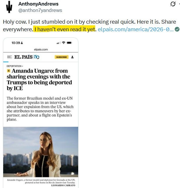 In reality, the piece was barely even presidency-adjacent. The “bombshell revelations” by the woman threatening to take down the Trumps? Basically that she once flew on Epstein’s plane (not a single Trump was present) and that she is currently “at war” with her ex—two tidbits that have already had their moment online. The not-even-remotely-explosive interview is little more than a recycled account of Ungaro’s dysfunctional relationship and her deportation woes.