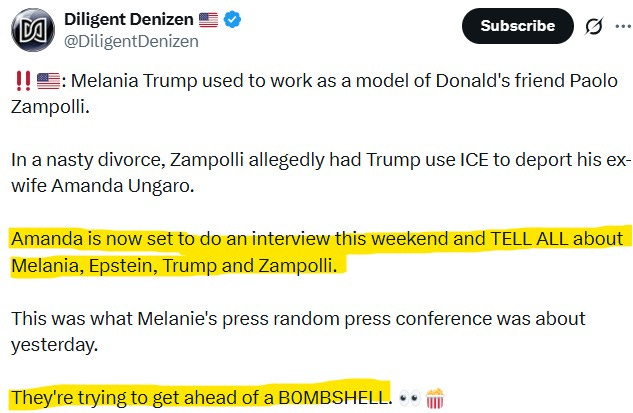 In her statement, Melania referenced the “fake images and statements” of her and Epstein that have been circulating [actually, she said calculating, but since her English is way better than my Slovenian, I’ll let it slide] on social media for years, and urged media consumers to “be cautious about what we believe.” She called on Congress to give Epstein’s victims their day—public hearings, sworn testimony, the whole bit. Oh, and by the way, Epstein did not introduce her to Trump. They met randomly at a party. Just in case you hear otherwise.