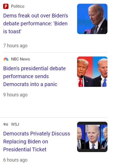 What did you think of the debate, who do you think they’re going to replace Biden with, and why are you sure it’ll be Newscum?