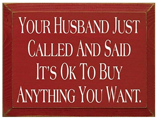 Although he’s not a born shopper, Joe has made great strides in the area during our marital tenure. For instance, when we’re on vacation, not only will he occasionally suggest a stroll through the local shopping district to check out the native wares but he has even learned to feign interest in the items I show him, and he hardly ever hovers anxiously in my shadow, checking his watch every thirty seconds and sighing dramatically. Definitive proof of how far he has evolved in this area came on the morning of our ten-year anniversary, when he presented me with a thick envelope. Inside the envelope was a lovely card, and inside the card was an even lovelier surprise: Ten crisp one hundred dollar bills. Now, a Benjamin a year for all of the compromise and sacrifice and that forsaking all others business—plus doubling the size of our little family practically single-handedly—might not seem like all that much, but my husband knows that I rarely spend money guiltlessly (although I admit I somehow still manage to squander an unseemly ton of it on God only knows what), so I was a pleasant combination of stunned and delighted.
