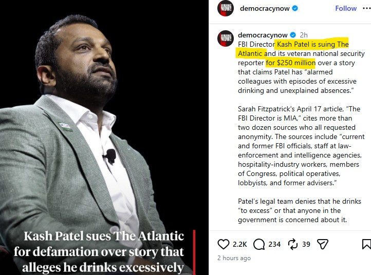 Kash Patel Sues The Atlantic Over Explosive Allegations