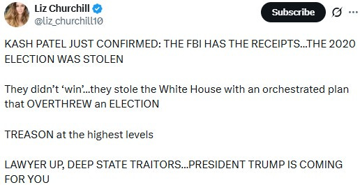 Sure. Patel could be about to drop a nuke on the whole “that election tampering business has been debunked.” It would certainly seem to be a foolish thing to imply if you didn’t have a smoking gun covered in fingerprints tucked into the waistband of your trousers. But then again, how many times have we heard “I promise you, the evidence is coming—and it’s coming soon”?