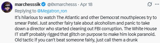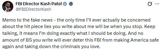 Patel issued a brief denial before returning to completely ignoring the Epstein files.