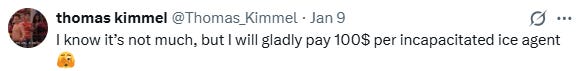 This week, that target was Immigration and Customs Enforcement agents slipping on frozen Minneapolis streets—served up as a feel-good montage by Jimmy Kimmel (“ICE capades, get it?”), complete with bouncy music, an obediently approving audience, and Instagram commenters describing the experience as “so satisfying I need a cigarette.”