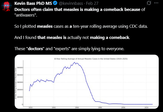 As my friend Doc Malik pointed out in his recent Substack on the subject, “Public health officials, politicians, and the media are grossly exaggerating the severity of measles to justify injecting billions of people with a pharmaceutical product. It’s almost too convenient that measles is being rebranded as a serious threat, a convenient way to keep the public fearful and compliant. Because if people stop seeing measles as a major problem, they might start asking uncomfortable questions: ‘If there’s no real crisis… why do we need the solution?’” (Do check out that ‘stack if you have time; Doc has some great graphics and stats to back up his hypothesis.)