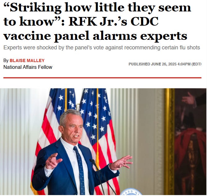 The rest of the media—in peak “trust us, we’re the experts” mode—latched onto a single half-quote from Dr. Adam Ratner, who told the New York Times it was “striking how little the voting members seem to know” about vaccines.