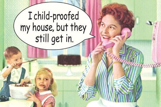 A few psychopaths who were never meant to have children aside, I think it’s safe to say the vast majority of parents want what’s best for their kids. It starts before they’re even born, when moms forsake sushi and saunas and back-sleeping and Syrah—or Sauvignon Blanc or Budweiser—and anything else deemed unfit for our growing fetuses. (I’m not really sure what dads give up, TBH, aside from sex with their not-pregnant partners, but male readers are free to boast about your herculean gestational sacrifices in the comments.) Before we even push our bundles of poop joy out of our bodies or have them gently removed by a skilled surgeon we spent six months researching, we obsess over car seat installation videos, spend a fortune on organic crib bedding and lead/phthalate/BPA-free sensory playthings, and baby-proof our homes to the point that we can’t even open our own cabinets.