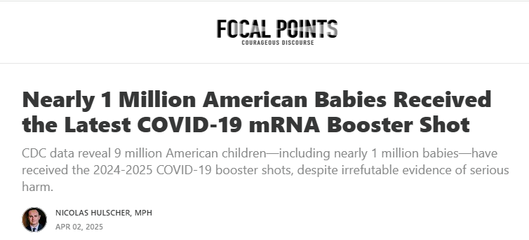 But COVID vaccines? For babies? Who are the parents lining up their newborns for this poison? Who are the providers offering it? I’ve used “unthinkable” to describe driving at night in the rain; this is unconscionable, unacceptable, unredeemably wrong on every level.