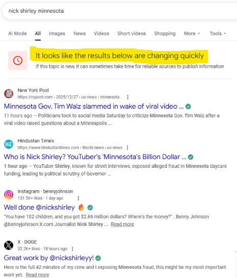 As of this writing, you will be shocked to learn, Minnesota officials—including the governor’s office—have not addressed Shirley’s footage. (Rep. Ilhan Omar, whose own net worth coincidentally surged 3500% in just one year, could not be reached for comment.) Major national outlets haven’t touched the story either, which is fascinating given how quickly “democracy dies in darkness” becomes a full-scale media event every time Trump signs an executive order.