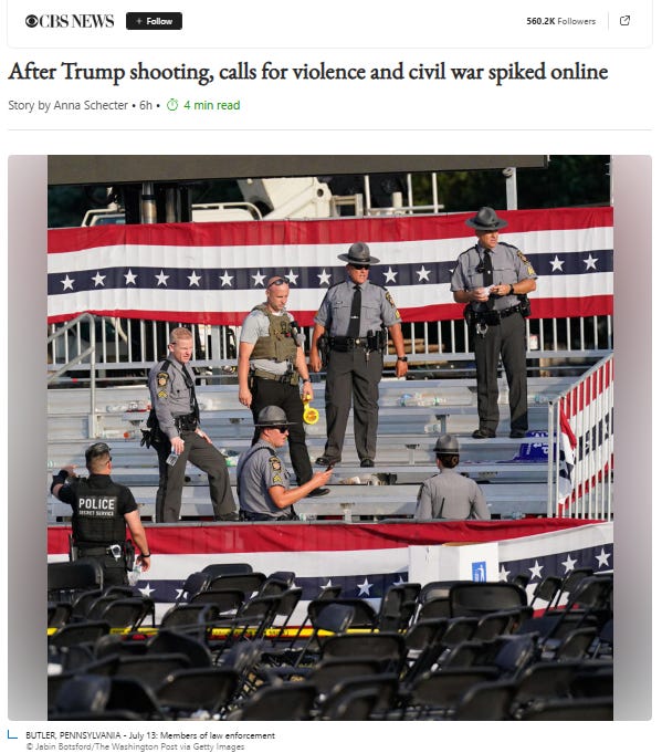 By standing on a stage at a rally and recklessly allowing himself to be shot at like that, Trump singlehandedly caused a spike in calls for violence and civil war. What a complete asshat. Do not under any circumstances vote for him, unless you like violence and civil war because that’s exactly what you’ll get so don’t come crying to us.