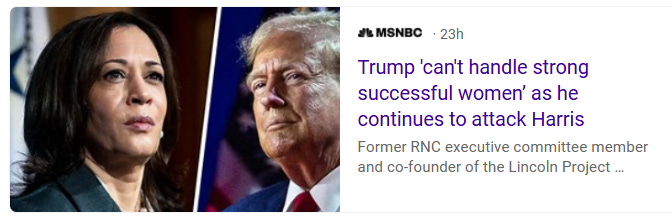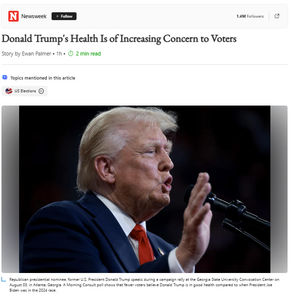 Sure, his opponent *we literally don’t even acknowledge that anti-vax guy* is a border czar who’s never actually been to the border (*or Europe hahahahaha there are so many places she hasn’t been it’s hard to keep track!) and who pollsters crowned The Worst VP Ever *perhaps the reason she’s so obsessed with being unburdened by what has been?* but she’s younger than Trump and has never had a single health issue reported by the media. Also she’s a woman, which her people can’t define but she promises she’ll fight for women’s rights *please click the link and savor the comments you’re welcome* so, you know, you should just vote for her unless you’re a misogynistic pig.
