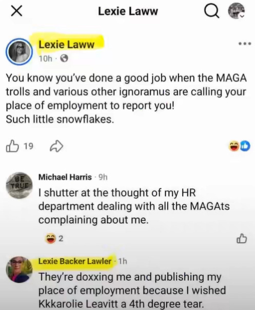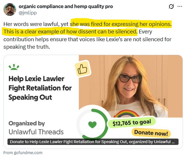 She is a liberal woman who used her personal social media — on her own time — to sharply criticize a public figure tied to a cruel, harmful administration. Her words were blunt, angry, and unapologetic. They were directed at power, not her workplace.