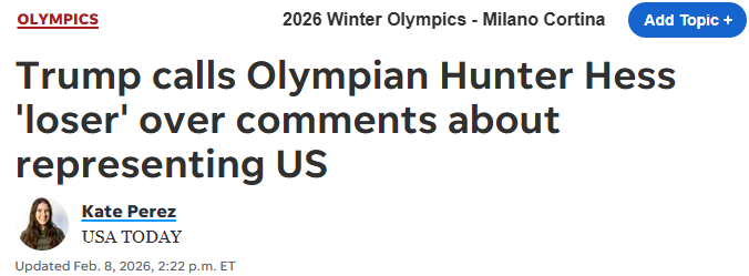 The outrage was fast and furious. Mike Eruzione, a captain on the 1980 gold medal team, stated that the skier shouldn't wear the USA uniform if he’s only there to “represent family and friends.” Offended X users called Hess a disgrace, a heinous a-hole, and a piece of human excrement. Scores vowed to boycott the Olympics entirely—probably the ones who thought curling involved dumbbells and were only tuning in hoping to see a wardrobe malfunction during the halftime show. Naturally, Trump chimed in by labeling Hess a “real loser,” because what else would you expect?