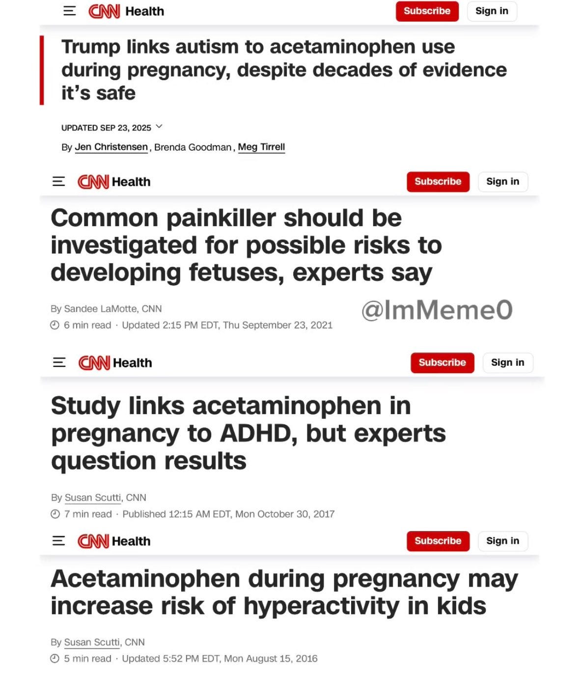 Now we’ve got expectant mothers filming themselves gulping acetaminophen like it’s communion wine with captions declaring “the orange man is not my OB” and “I believe in science.” Sweetheart, science isn’t whatever the opposite of Trump says. Science is data, peer review, controlled studies. You don’t prove your superior intellect by playing pharmaceutical roulette with your fetus to rack up likes from strangers named @ResistanceQueen93. If you really want to stick it to Trump, plaster your car with I ❤️Nancy Pelosi stickers, stage a protest, write a scathing Substack post about his not-so-beautiful-hair—but please, don’t weaponize your uterus like it’s a Twitter dunk tank.