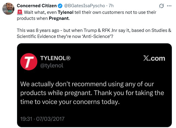 And yet, even Tylenol says you shouldn’t take Tylenol when you’re pregnant.