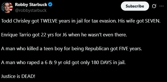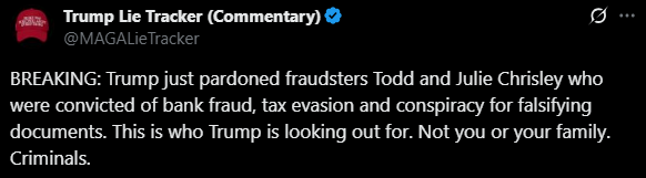 Critics are fuming that the pardon had nothing to do with new evidence or legal errors, and everything to do with being famous, conservative, and available for Fox News interviews. The left is calling it white supremacy (of course) and a blatant disregard for the law and something akin to reality TV cronyism. “Oh, Trump’s going to pardon the Chrisleys?” wrote WaPo columnist Phillip Bump on BlueSky. “I’m stunned.”