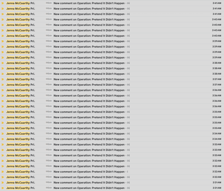 Yes, I received your faux email at 4:33 am, spotted the extra vowel (“Ryan, I’d like to buy the A, please…”) right away but still momentarily thought, ‘Ooooh, how cute, Jenna is DM’ing me in the dead of night using her private secret email account, MUST be important…”