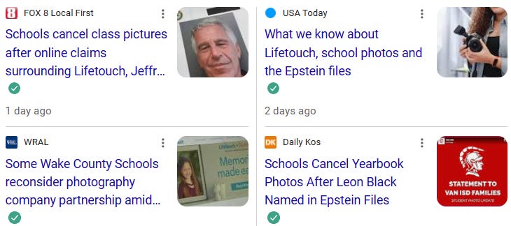 Remember how Wayfair definitely wasn’t trafficking children because Wayfair said they definitely weren’t trafficking children? Well, if you’ve heard the rumors about Lifetouch—the company that takes photos of more than 25 million students across the U.S. and Canada every year—being implicated in the Epstein files, you can relax. According to USA Today, “Lifetouch said it is not named in the Epstein files.”