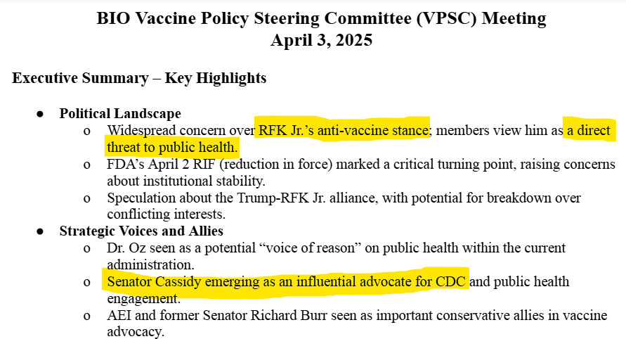 Remember those leaked meeting minutes I wrote about a few months back—the ones where a group of Big Pharma swamp whisperers from the Biotechnology Innovation Organization [BIO] Vaccine Policy Steering Committee sat around a mahogany table, sipped their oat-milk lattes, and casually voted RFK Jr. off the island? Well, friends, their little eviction notice just got posted on Capitol Hill.