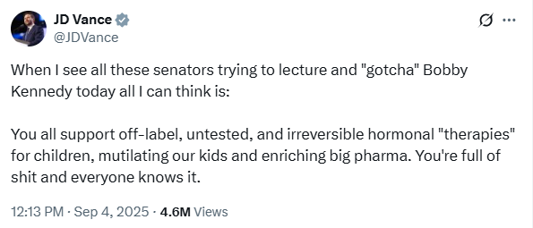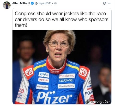 And what Senate hearing would ever be complete without a melodramatic outburst by Massachusetts Senator Elizabeth “she/her/hers” Warren? This time, the Pharma-funded finger-wagger accused Kennedy of “effectively denying vaccines” by not recommending them for perfectly healthy people. Warren is bent—and I mean bent—that Kennedy has removed Covid vaccine vending machines from every street corner in America, and she’s not going to let up until he promises to reinstall them.
