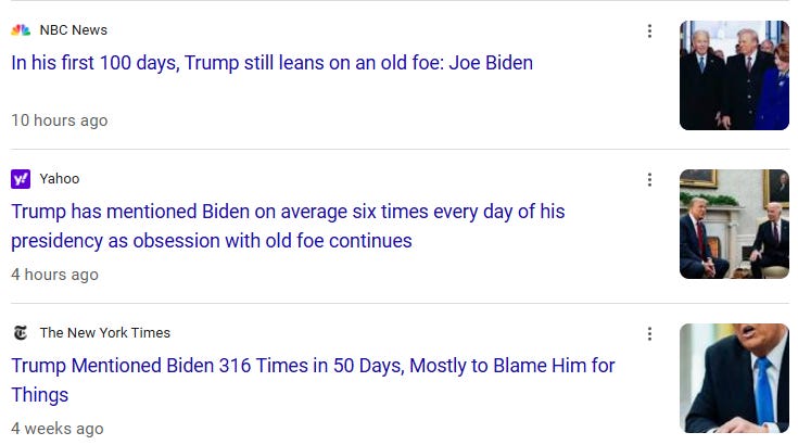 They're too busy counting the number of times Trump invokes Biden [*not satire]