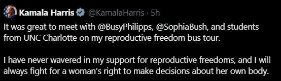 Ah, yes. Democrats are deeply concerned with women’s rights to abort their unborn babies bodily autonomy. And nobody cares about your-body-your-choice more than Kamala The Uterus Czar Harris.