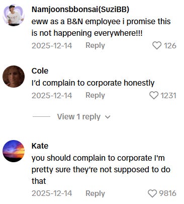 But that’s not how this is being received. No, this is being treated like a moral emergency. Writers sought explanations. Readers demanded to know whether Barnes & Noble endorses these ideas, as if shelving a book were the same thing as kneeling at its altar. Commenters honestly couldn’t even.