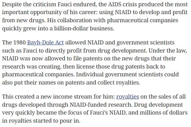 The result: Fauci lied, people died. He—and Pharma—raked it in. Lather, rinse, repeat. How is this man not in prison? Tell me, please.